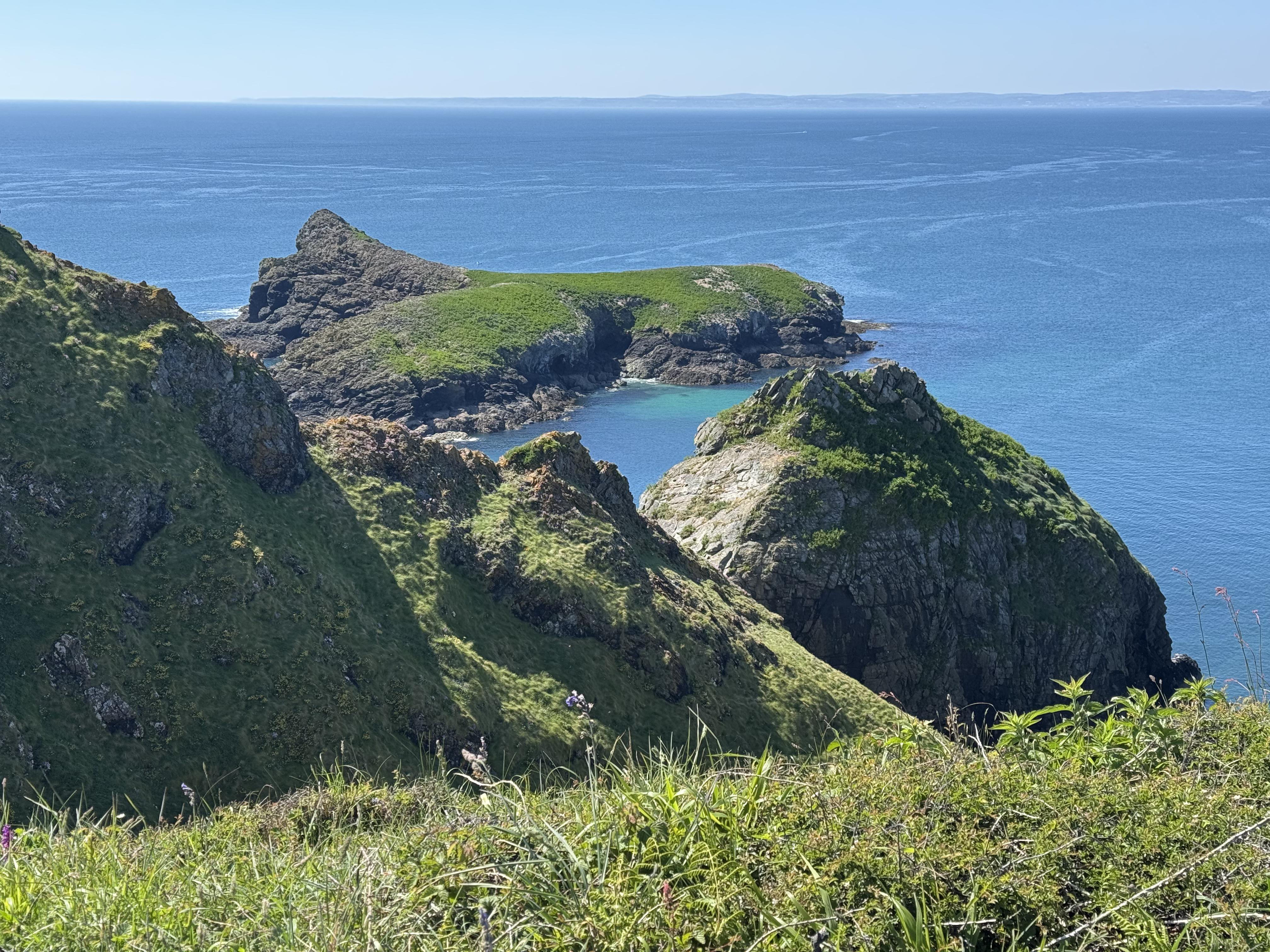 Today I spent a lot of time talking and sitting. My daily mileage wasn’t very high both today or yesterday as I was nursing my knee but it did mean that I’ve had the opportunity to look out to sea a lot. And I think one of the things that catches my eye is the colour of the sea. It never looks quite the same when I take a picture although maybe the videos I’ve been making show it up better. But the colours always take my breath away, and I’m not sure why, but it always makes me think that I need to decorate my bedroom.