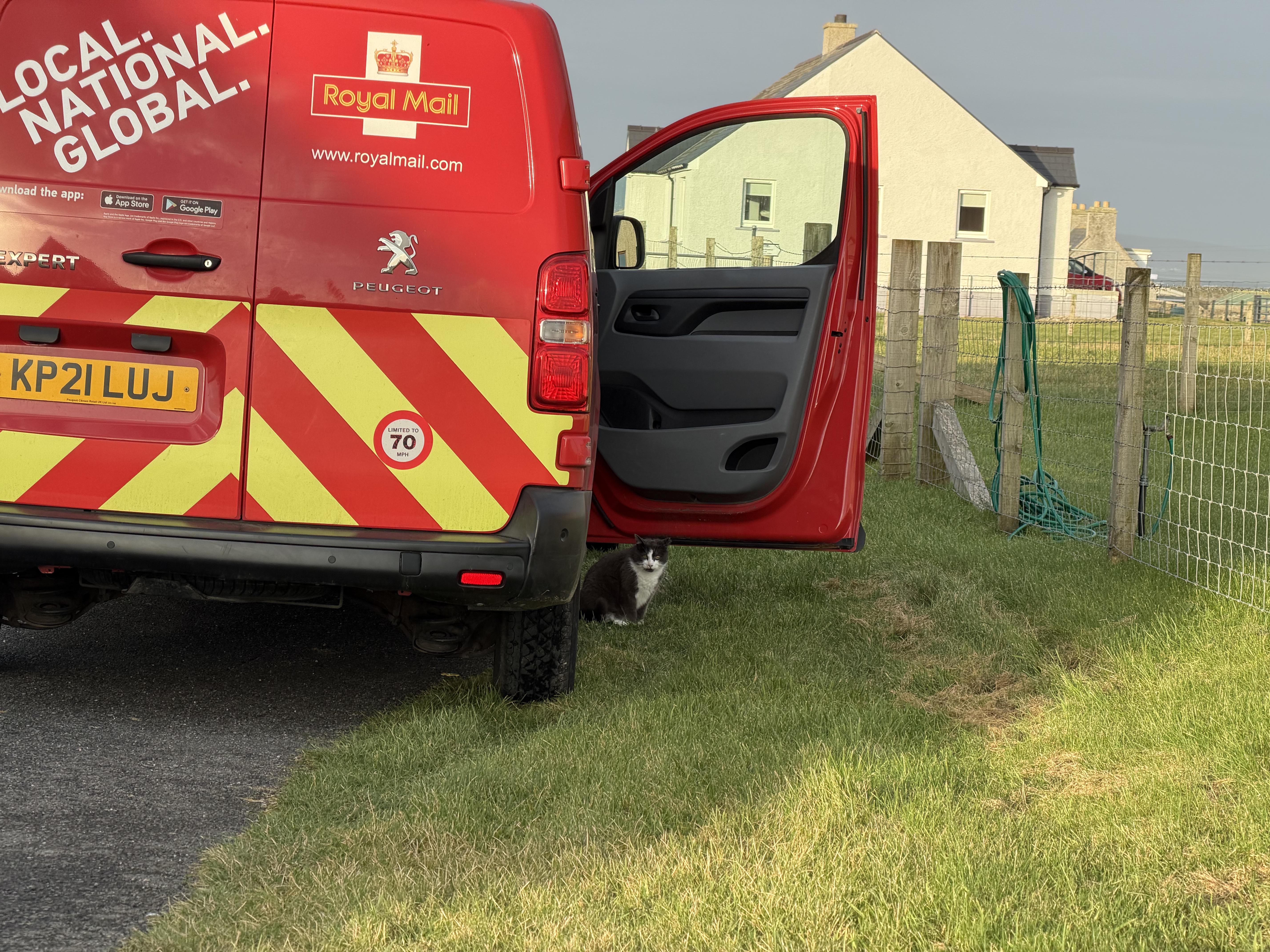 After the excitement of the nearly missed path, the route heads east in a fairly straight line. Just before this I saw a post van and it made me chuckle as the door was open and a black and white cat stood guarding it. Shouting (well meowing) at me as I walked past. There was no sign of Pat though. Probably solving a problem somewhere.