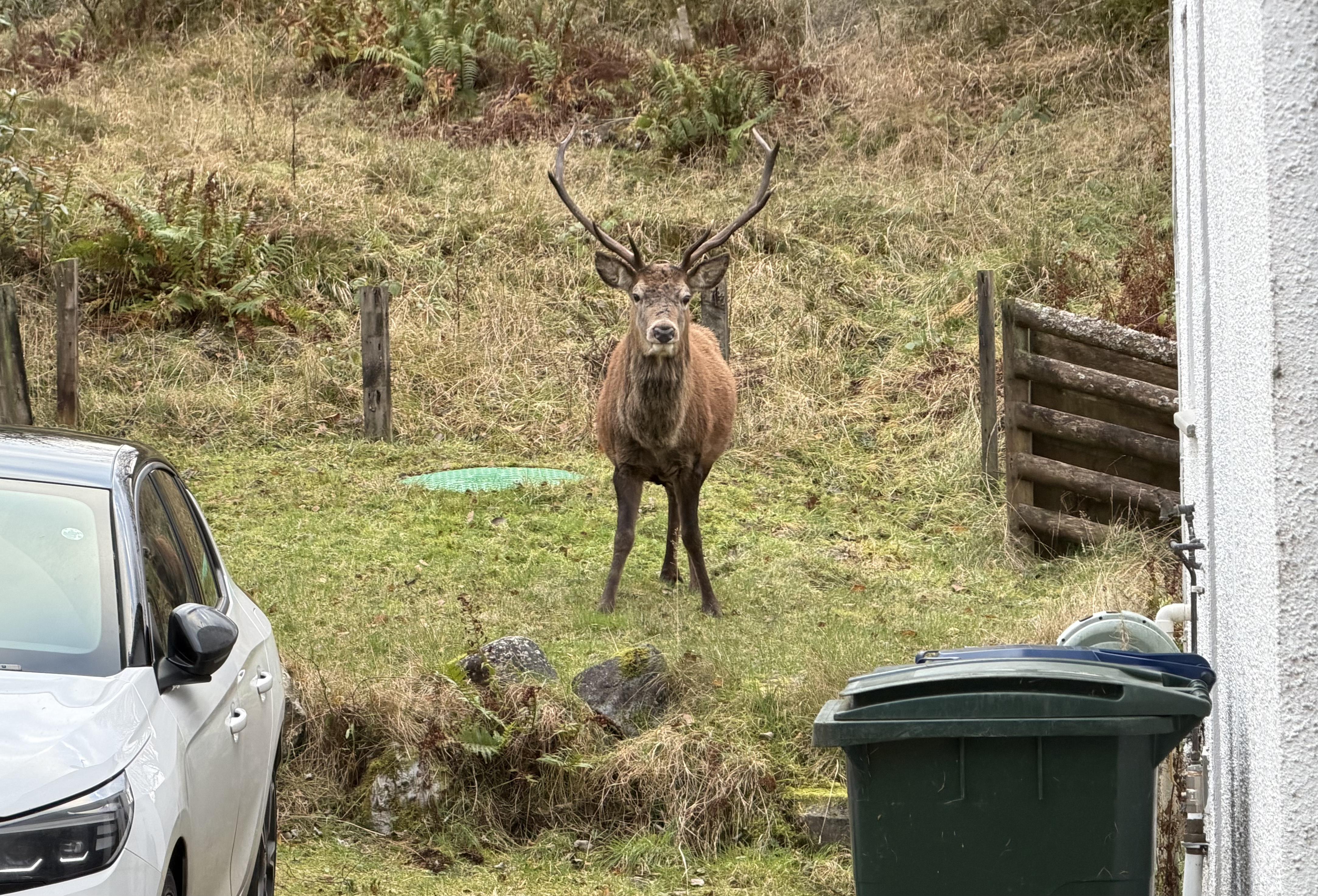After a short period where myself and the guy I was chatting looked at each other a bit perplexed, we walked up to the man and saw he was looking at a stag just standing on his garden. Just staring at us. I think he was waiting for food.